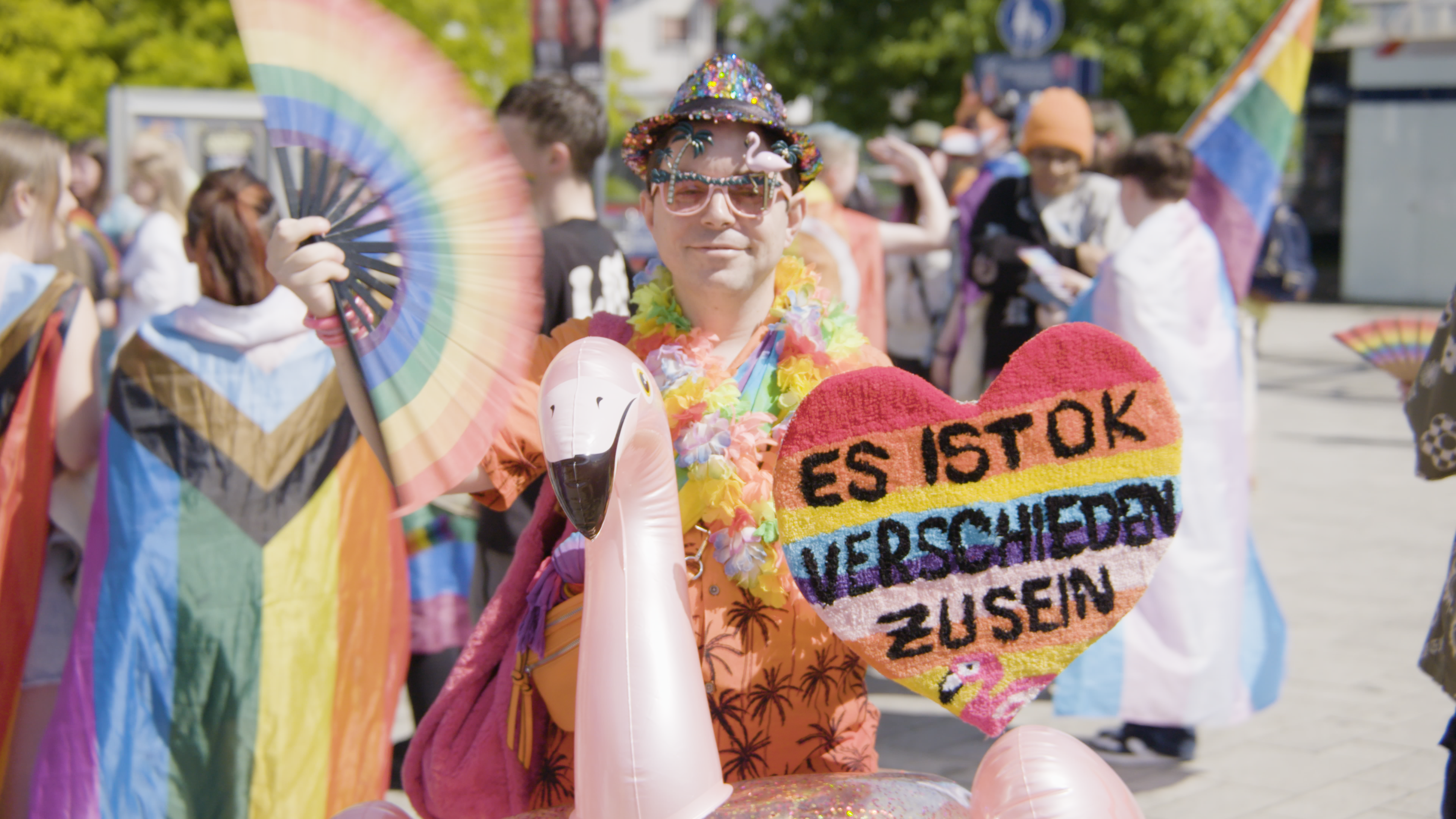 Dass es junge Queers von heute einfacher haben sollen als er damals, ist auch für Eric die größte Motivation: „Mein persönliches Erleben hier in der Umgebung, in der ich auch aufgewachsen bin, war, dass ich eigentlich wenig von queerer Community wahrgenommen habe. Deshalb habe ich mich dann auch erst mit 18 geoutet, weil ich bis dahin dachte: Hey, mein ganzes Umfeld ist irgendwie heteronormativ.“